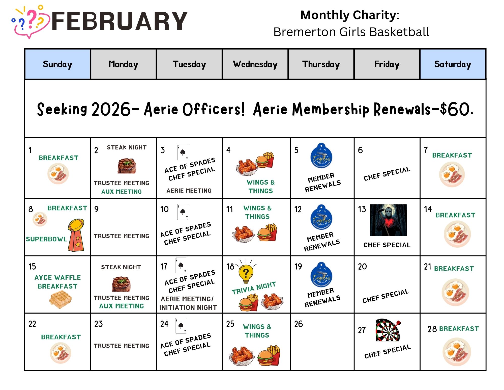 Join us for our Tuesday night food specials alongside the Ace of Spades game and 50/50 fundraiser! Enter the AOS drawing for your chance t...